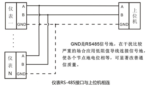 一般RS-485分為四線和二線兩種傳輸方式,我公司產(chǎn)品使用的一般都是二線傳輸方式,其中一線定義為A,另一線定義為B。(GM7701-F1使用的是四線方式,兼容二線)。