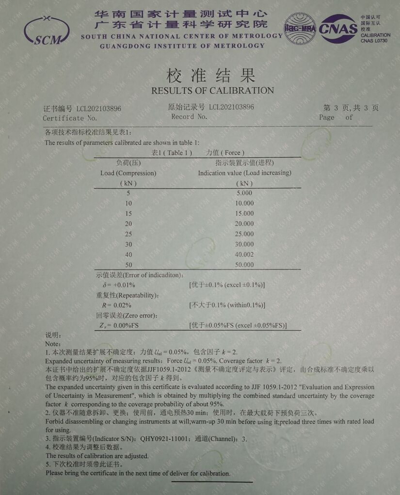 50kN測力校準證書: