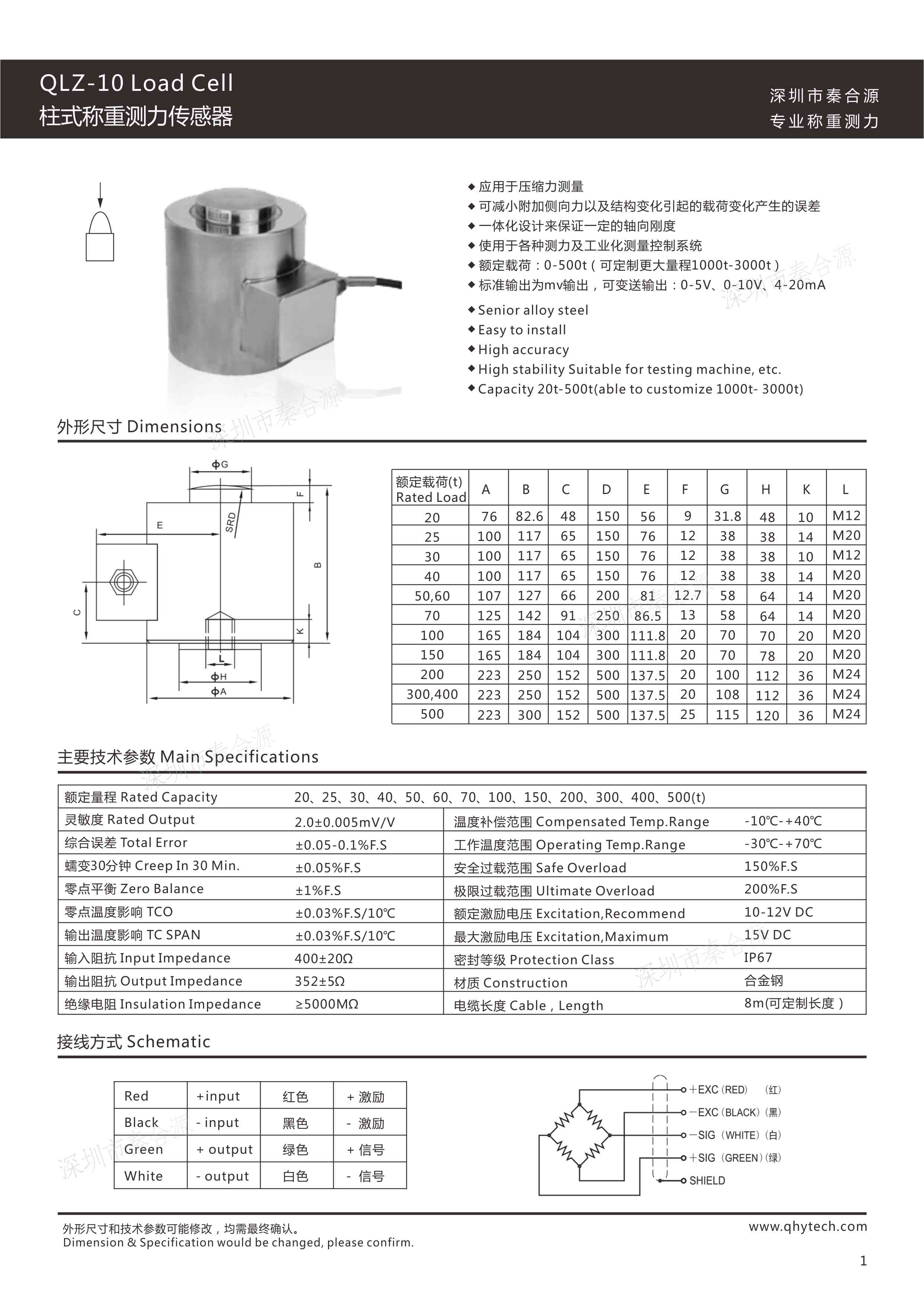 產(chǎn)品名稱(chēng):QLZ-10柱式稱(chēng)重測(cè)力傳感器0-500T