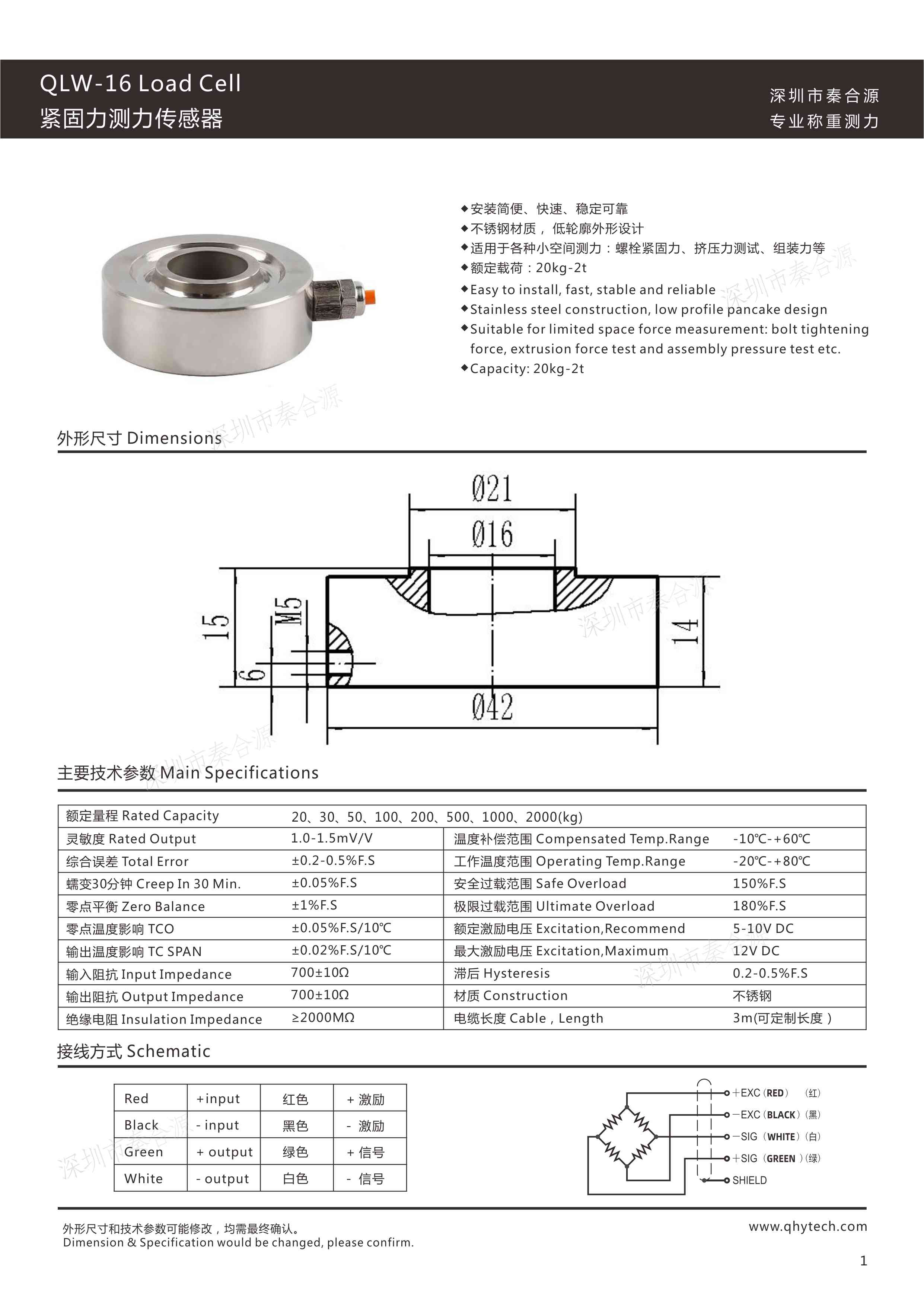 產品名稱:QLW-16環形測力傳感器20kg-2T