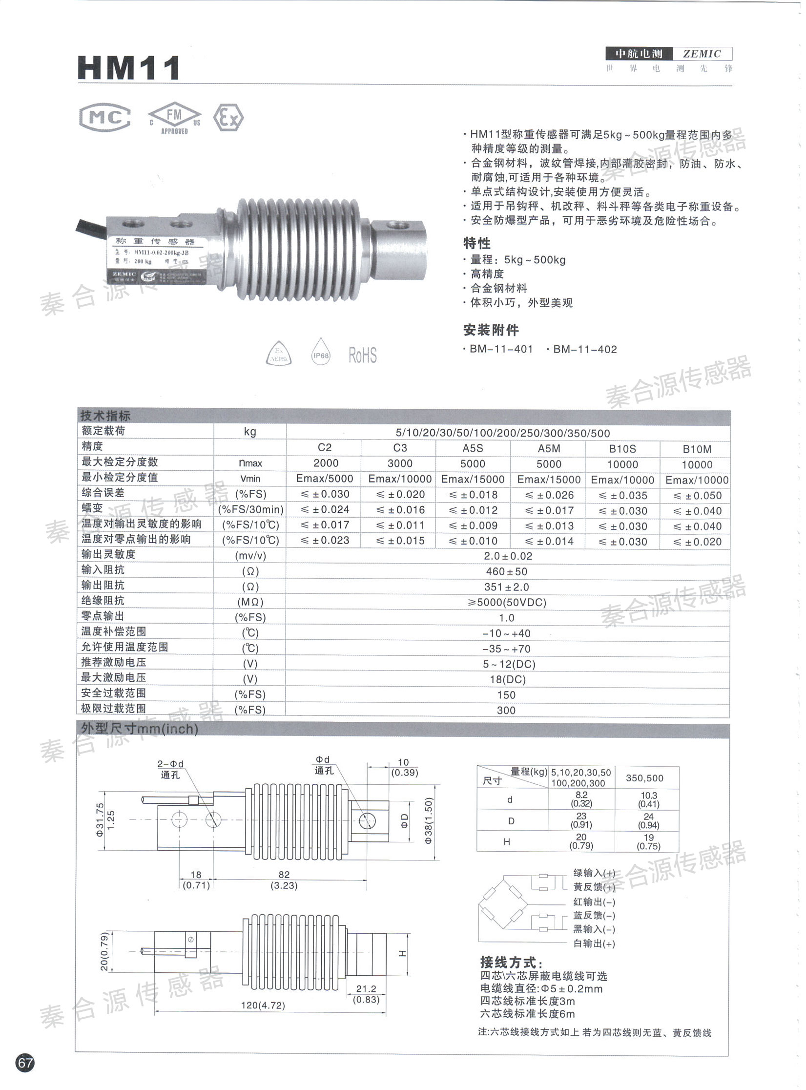 HM11型稱重傳感器可滿足5㎏~500㎏量程范圍內的多種精度等級的測量。