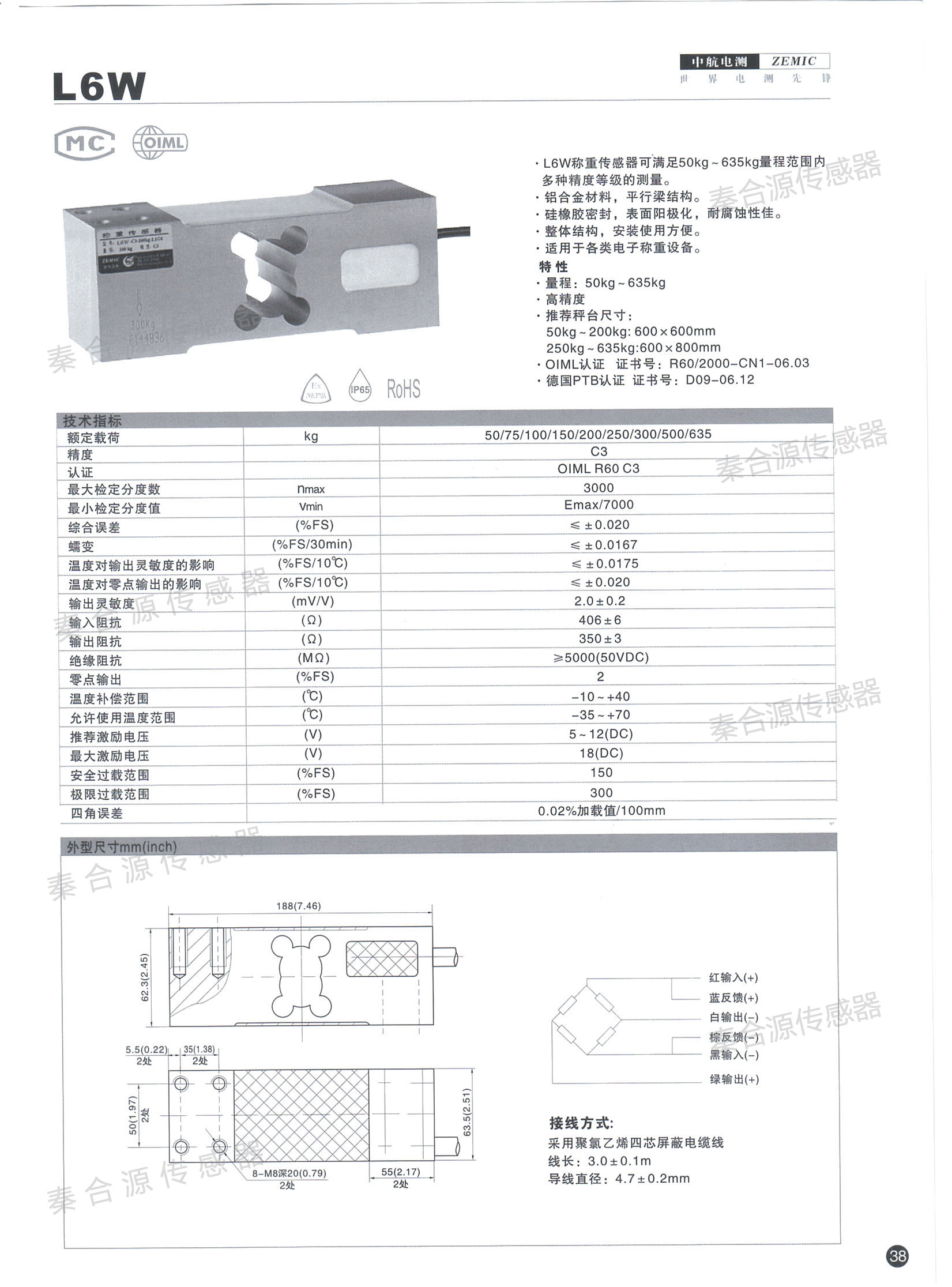 產品特點: L6W稱重傳感器可滿足50kg-635kg 量程范圍內的精確測量
