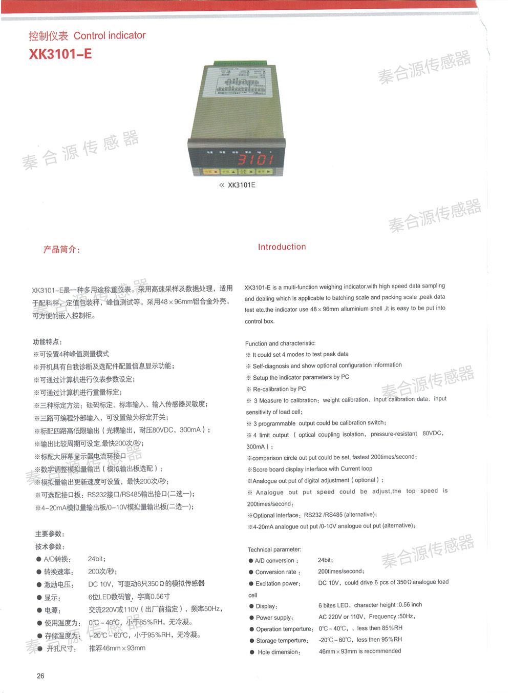 產品名稱:XK3101E稱重控制儀表48*96mm