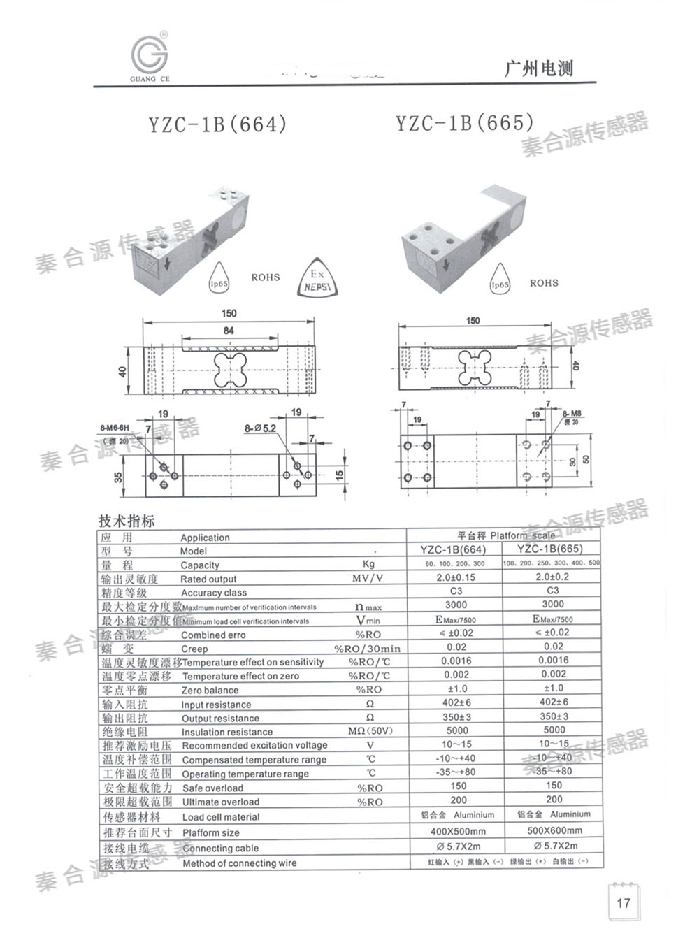 產品名稱:廣測傳感器YZC-664/665(60-500kg)
