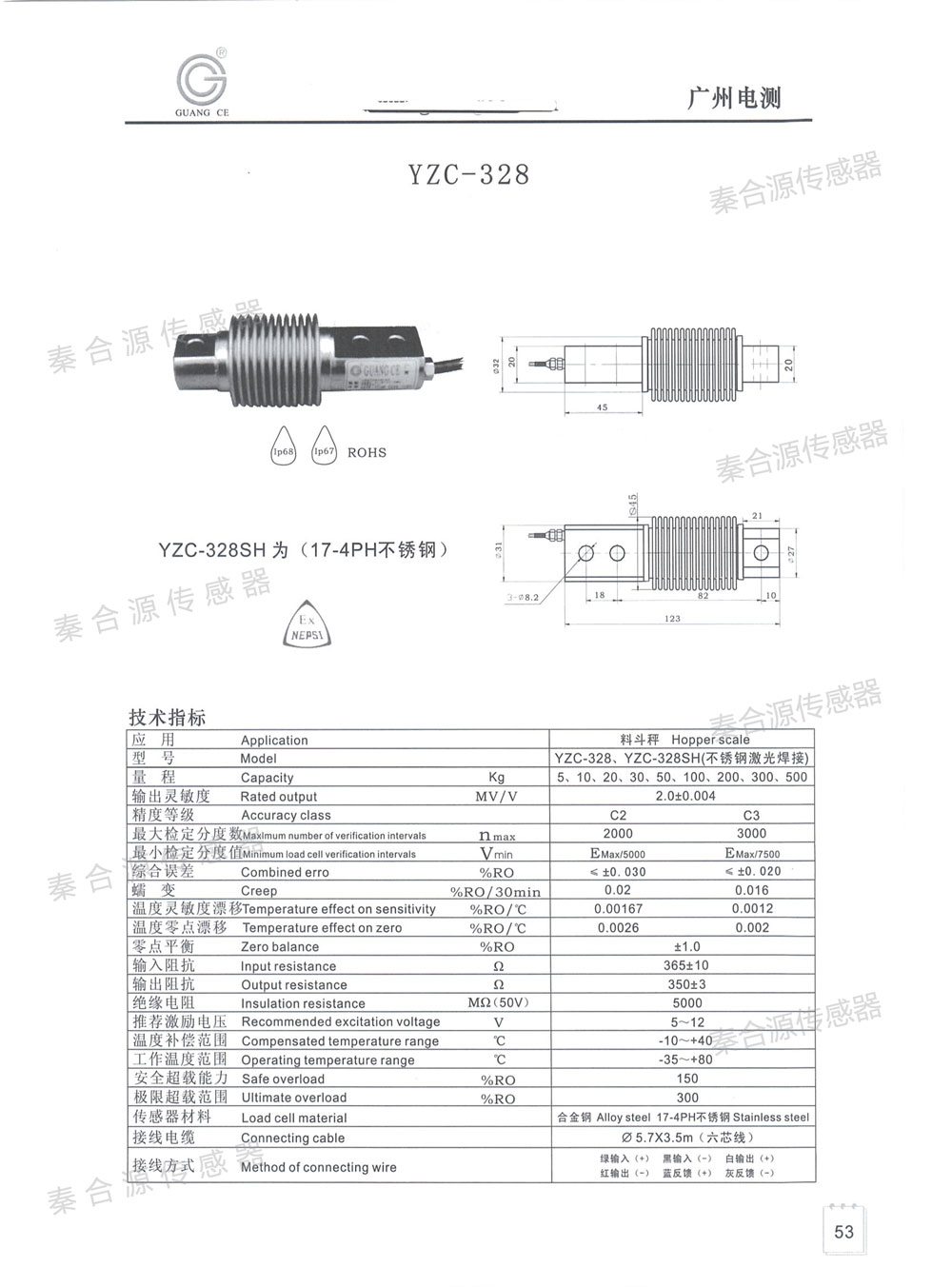 產品名稱:廣測皮帶秤稱重傳感器YZC-328(5-500kg)
