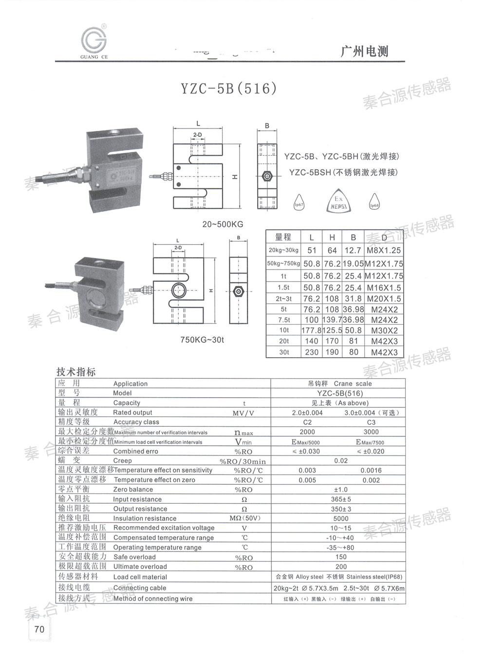 產(chǎn)品名稱:廣測拉壓力傳感器YZC-516(20kg-30T)