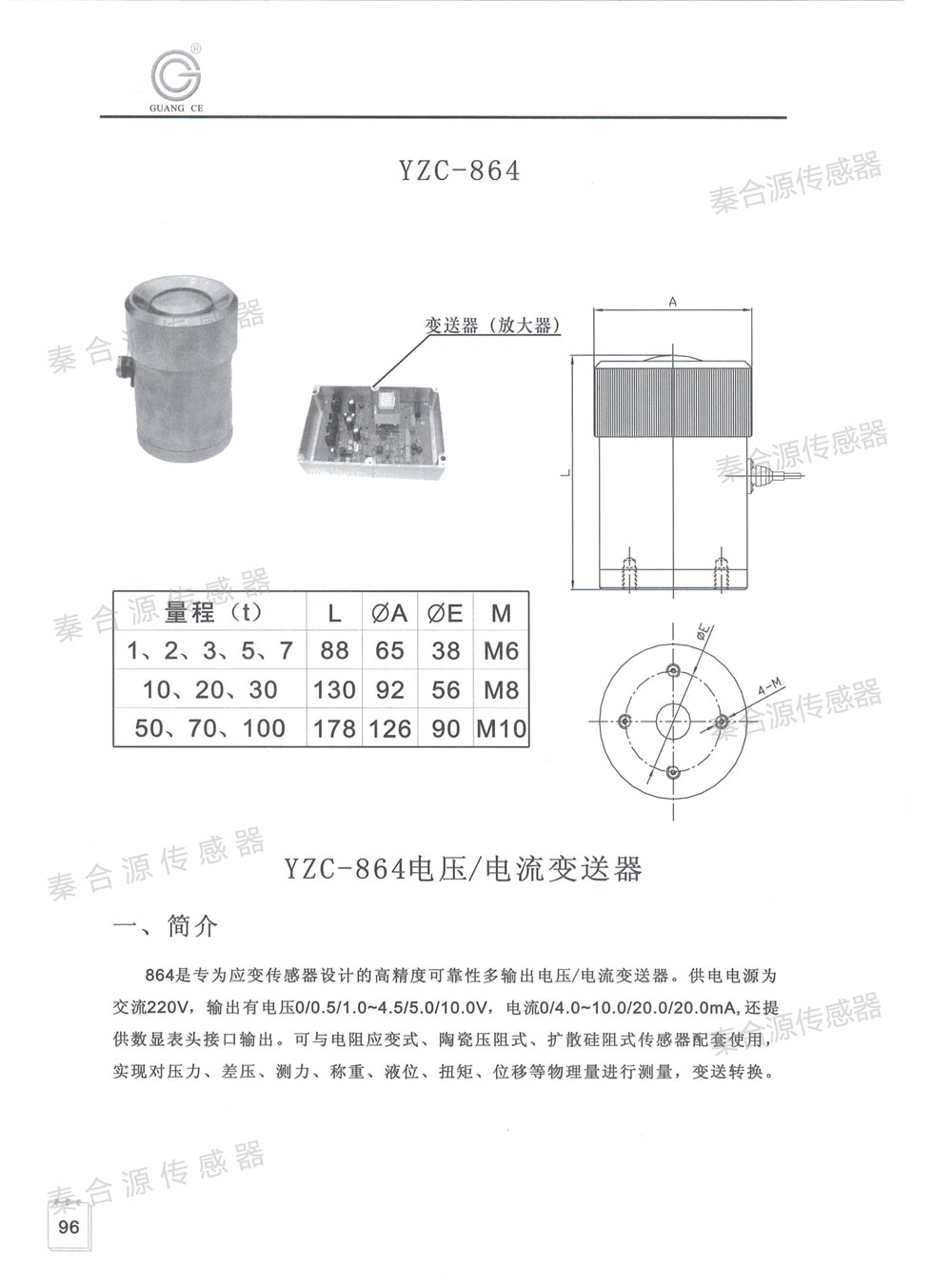 產(chǎn)品名稱:廣測稱重傳感器YZC-864(1-100T)