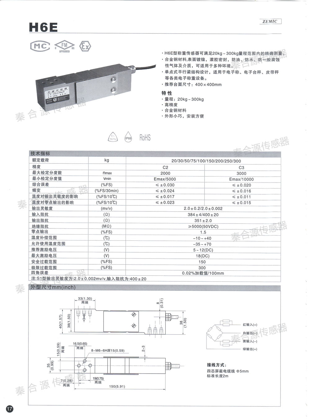 ZEMIC傳感器H6E(20-300kg) 詳細資料: 選型型號: H6E-C3-20kg-2B,H6E-C3-30kg-2B,H6E-C3-50kg-2B,H6E-C3-75kg-2B,H6E-C3-100kg-2B, H6E-C3-150kg-2B,H6E-C3-200kg-2B,H6E-C3-250kg-2BH6E-C3-300kg-2B,H6E-C3-500kg-2B; 鄭重承諾: 1、凡從我司購買產品,1個月內有質量問題無條件換貨或退還全部貨款,不收任何額外費用。 2、凡從我司購買的產品提供:1年內免費保修,終身維護; 3、深圳市秦合源,本著誠實、誠信的原則服務客戶,為客戶提供性價比高的產品; 4、秦合源人的特點就是實在,實實在在做人、踏踏實實做事。 5、歡迎新老客戶咨詢、訂購,呂經理:13682686710;0755-86066036,0755-86061700