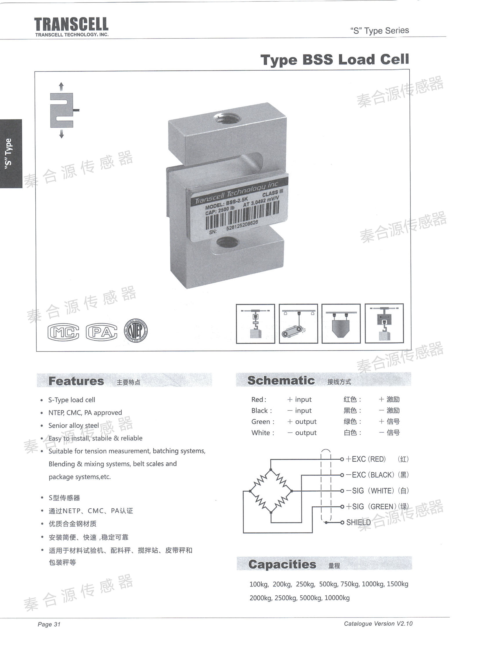 BSS-2000kg、BSS-1T、BSS-2T、BSS-2.5t,BSS-5t,BSS-7.5t,BSS-10t;