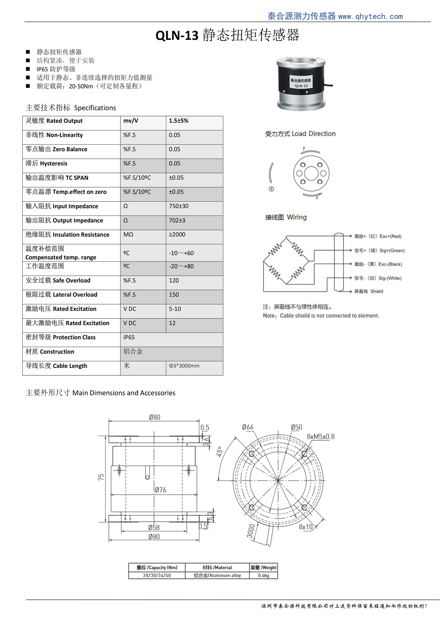 產品名稱:靜態扭矩傳感器QLN-13(20-50Nm)