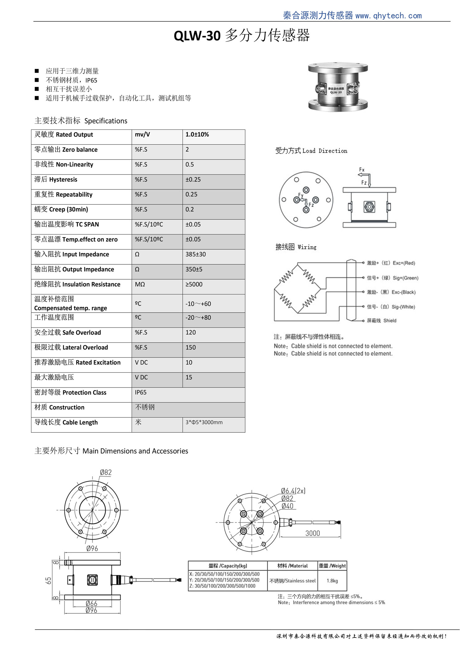 產品名稱:QLW-30三維力測量傳感器(X、Y、Z)