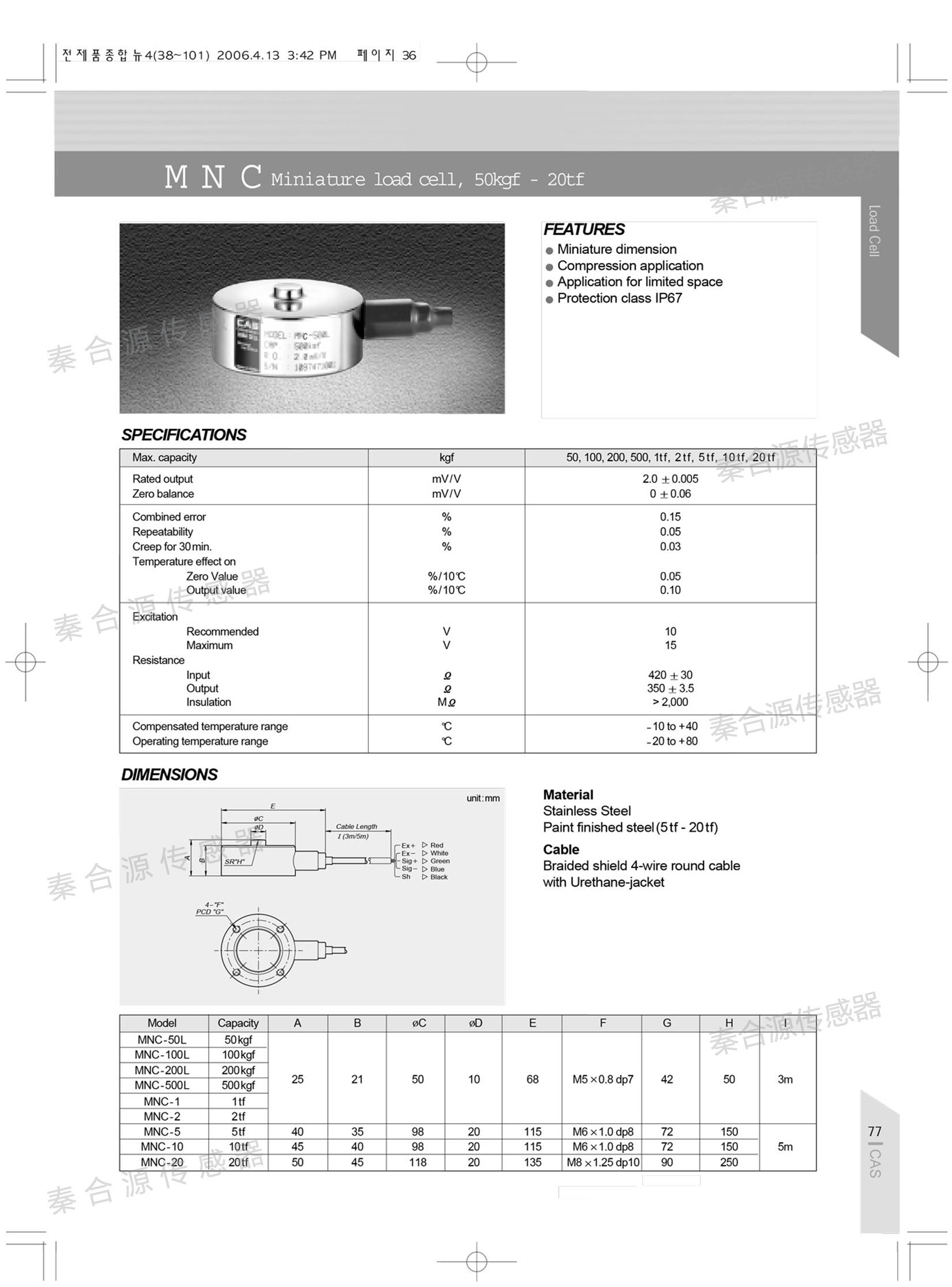 產品特點: CAS稱重傳感器,稱重傳感器MNC-200L,測力傳感器MNC-500L,稱重測力傳感器MNC-2T;