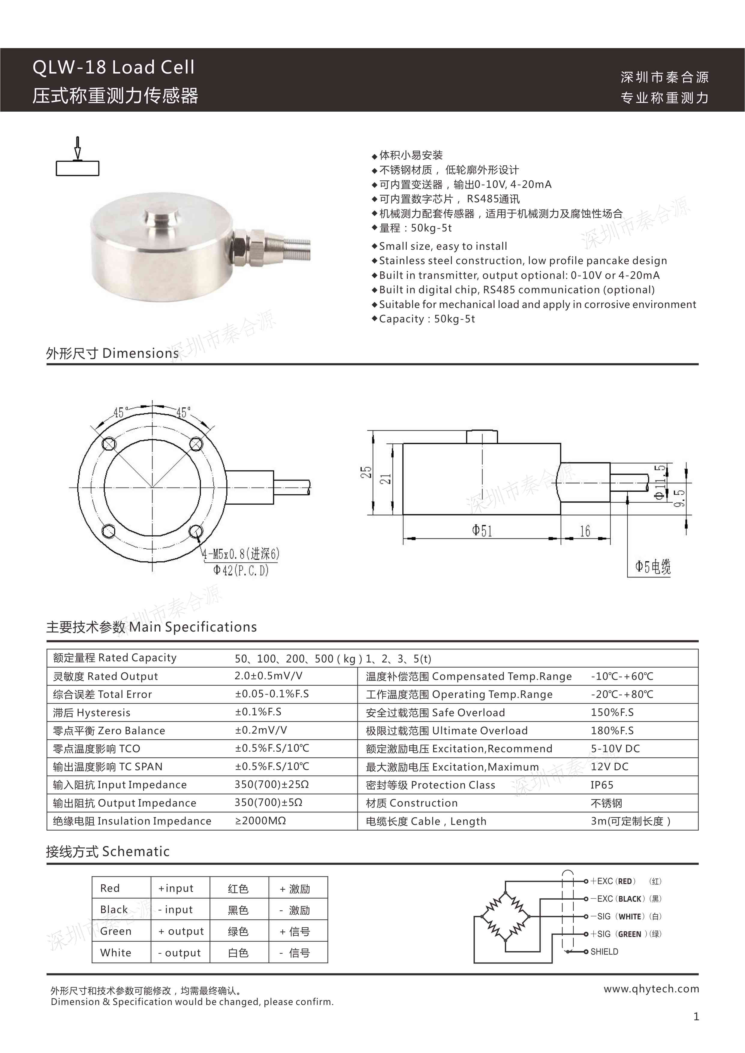 產品名稱:QLW-18壓式測力傳感器 φ51mm