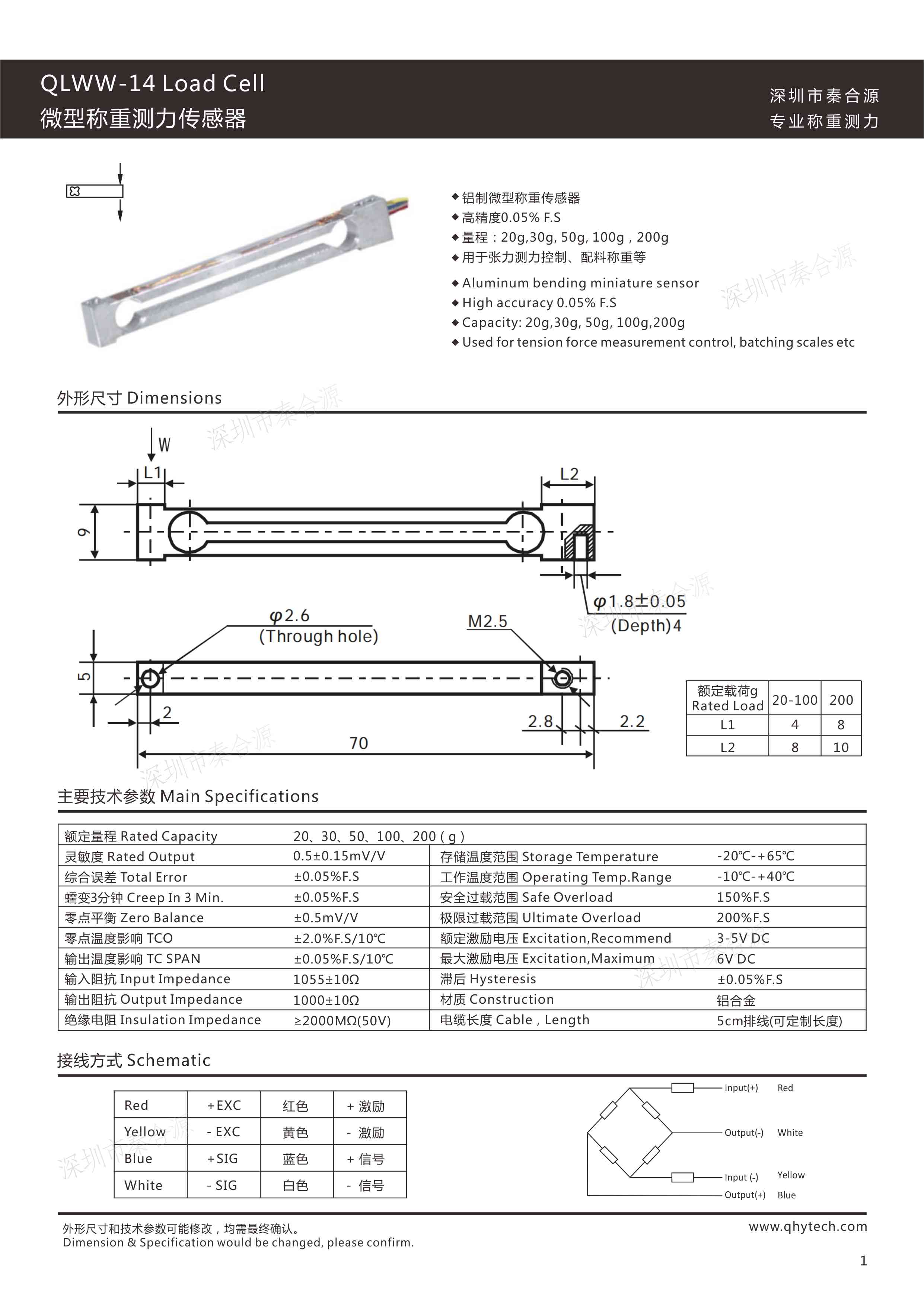 QLWW-14-50g測力傳感器(分辨率0.01g):