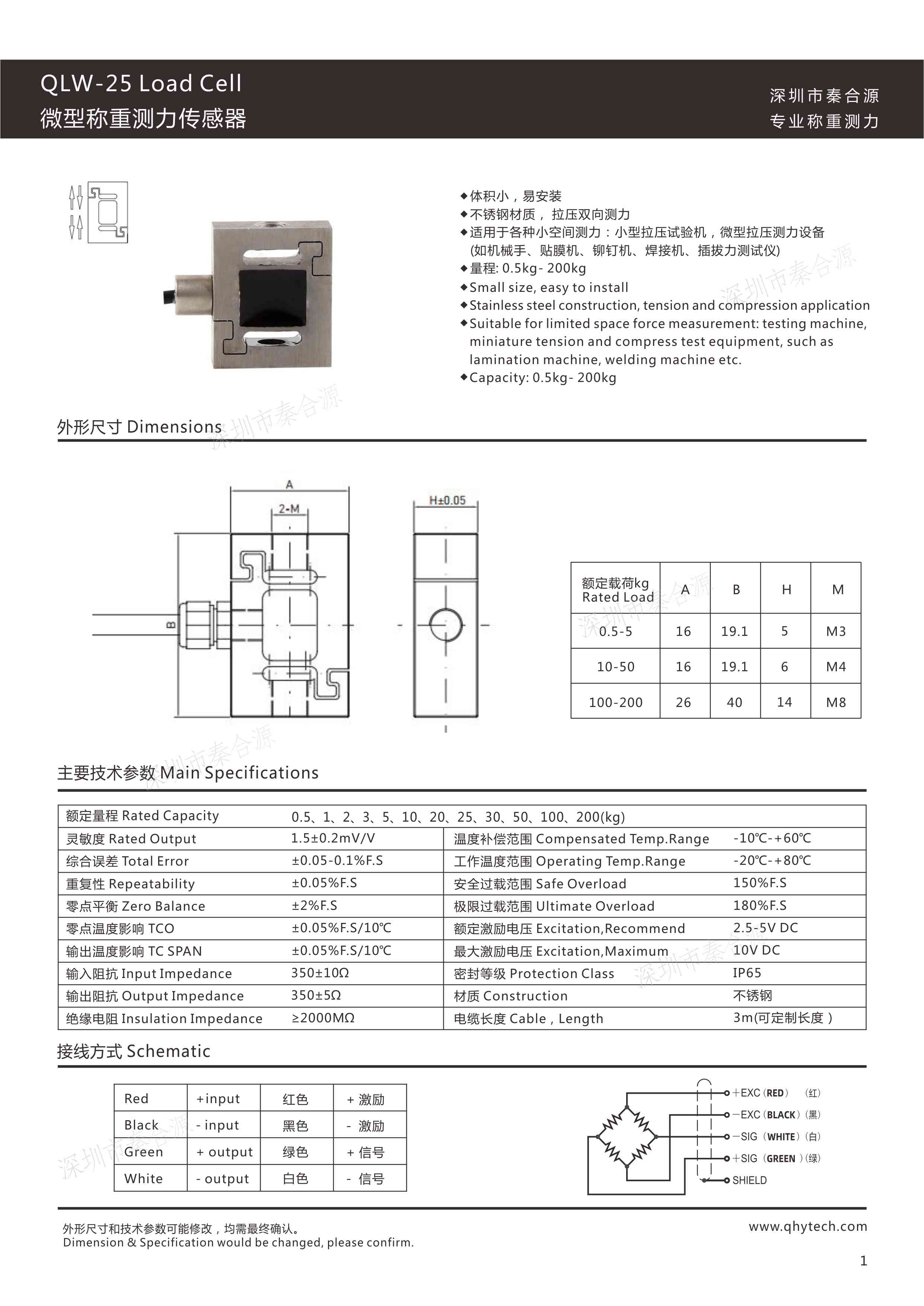 產(chǎn)品特點: 小尺寸S型拉壓力傳感器,線性好,精度高,適合各類自動化、實驗室測力